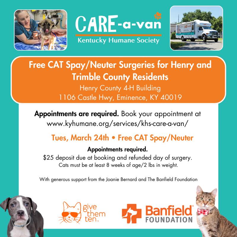 FREE Cat Spay/Neuter Surgeries for Henry and Trimble County Residents