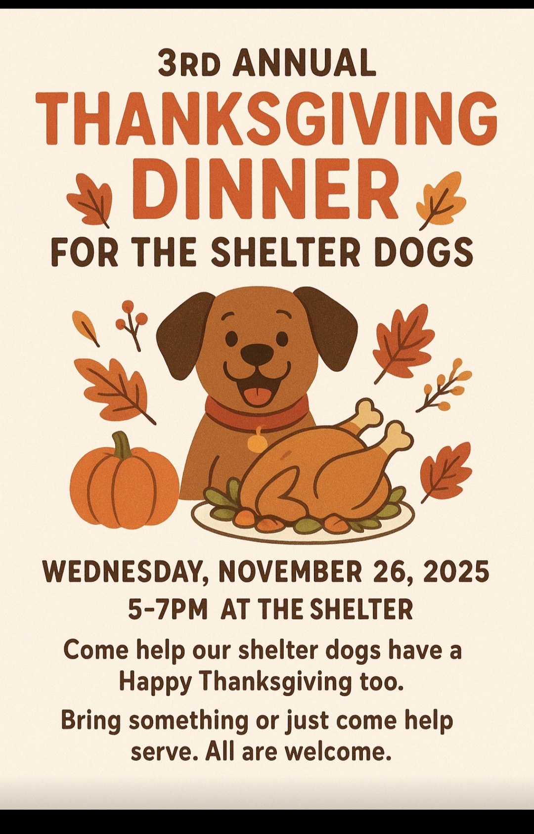 Come out and help make Thankgiving special for our homeless fur babies. Donations needed.
